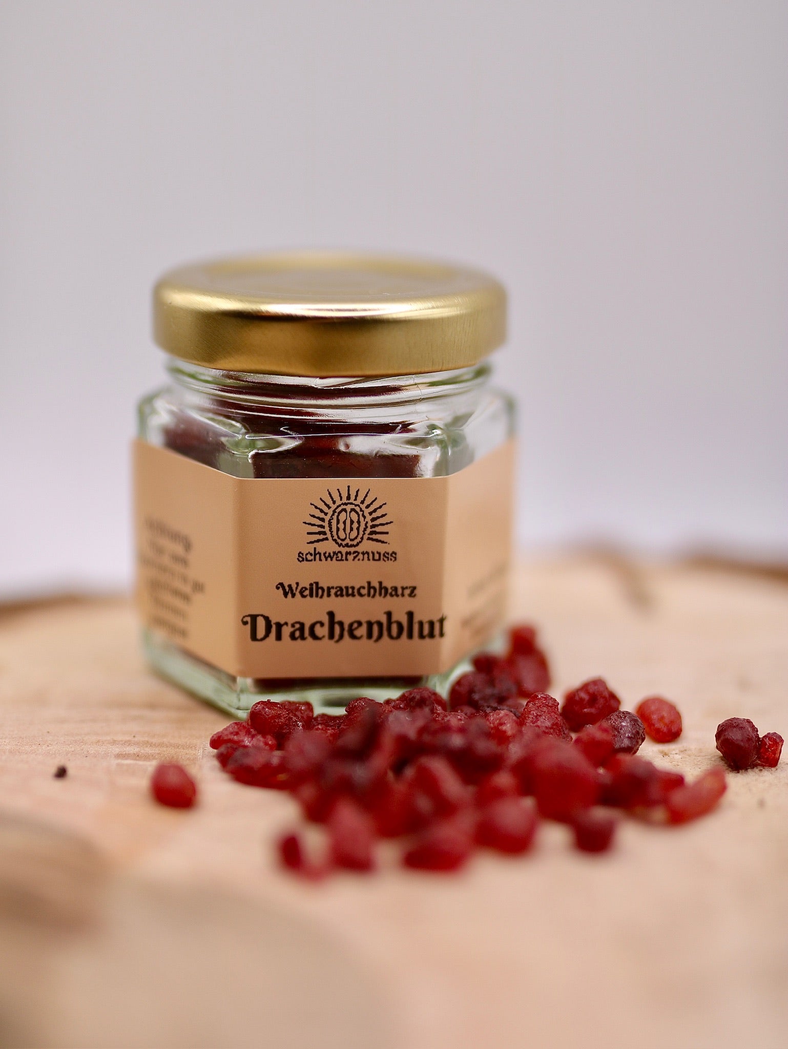 Sein tiefrotes Pulver verleiht Harzen eine warme, kräftige Note und erzeugt beim Räuchern einen dichten, aromatischen Rauch.