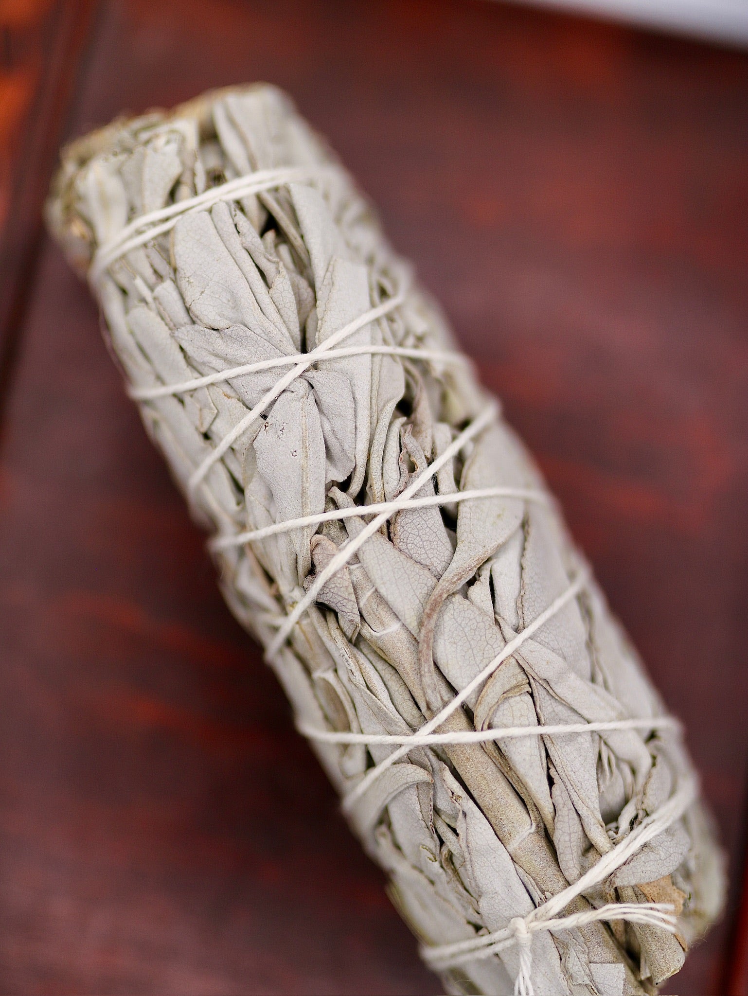Weißer Salbei oder Palo Santo am Ende entzünden