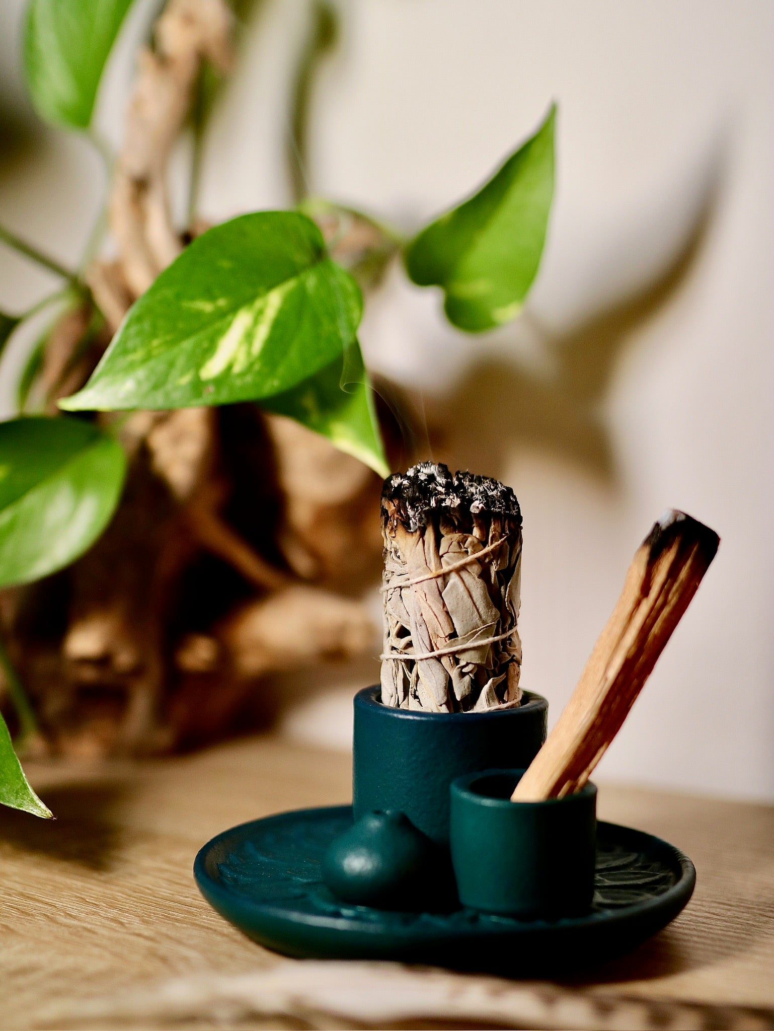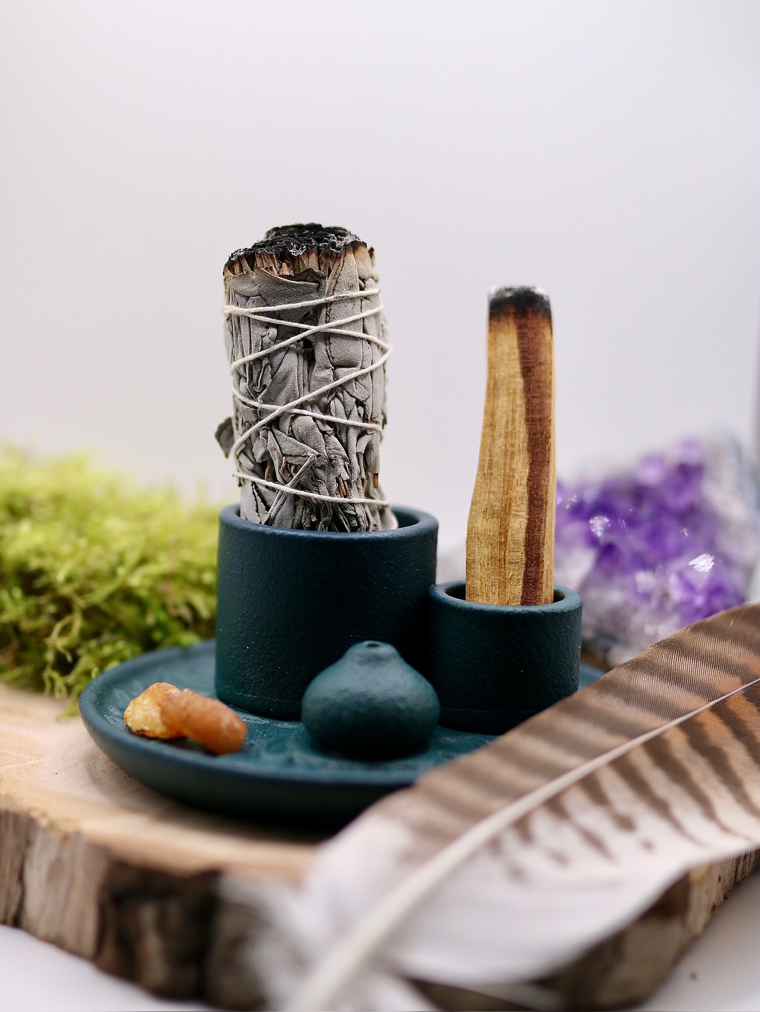 Die beiliegende Räucherschale (Smudge Bowl) dient sowohl als sicherer Halter für dein Räucherwerk als auch als stilvolles Element in deiner Wohnung oder auf dem Altar.